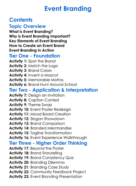 Event Branding Worksheet Activity Booklet
