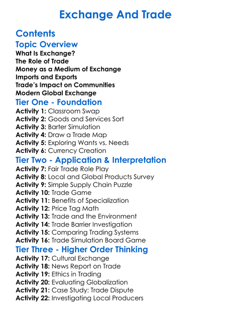 Exchange And Trade Worksheet Activity Booklet