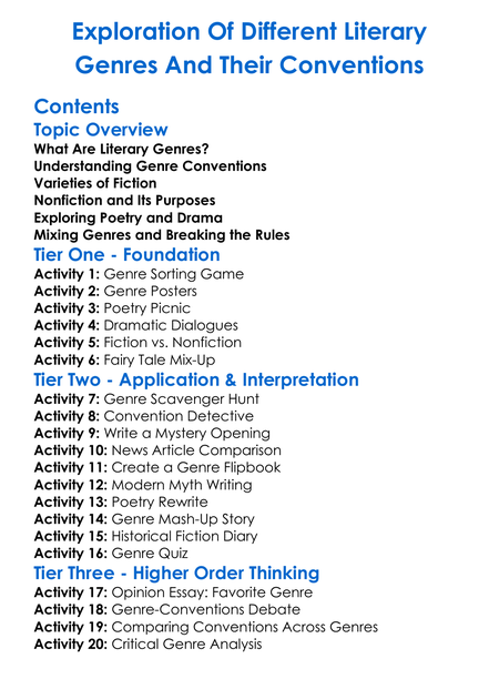 Exploration Of Different Literary Genres And Their Conventions Worksheet Activity Booklet
