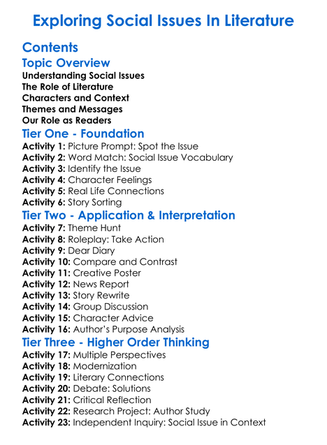 Exploring Social Issues In Literature Worksheet Activity Booklet