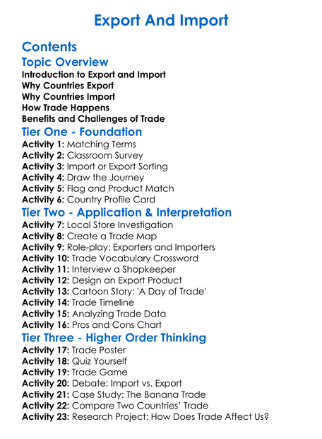 Export And Import Worksheet Activity Booklet