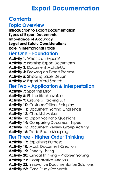 Export Documentation Worksheet Activity Booklet