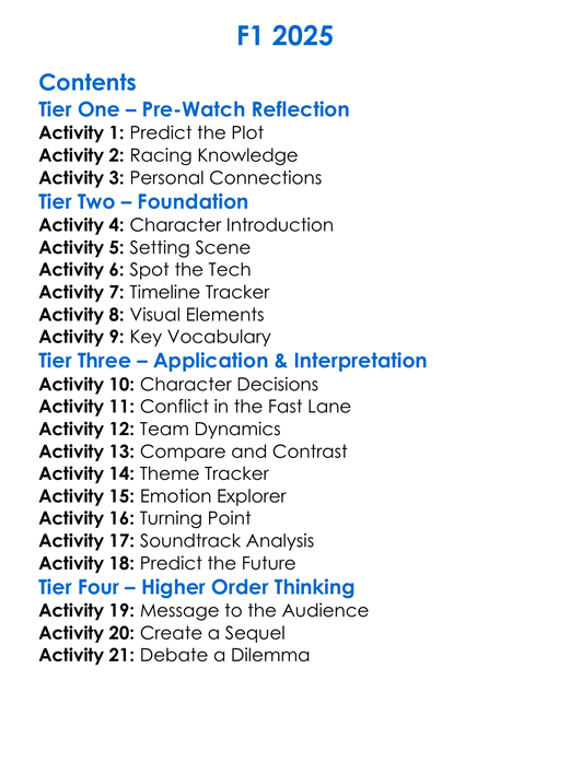 F1 2025 Worksheet Activity Booklet