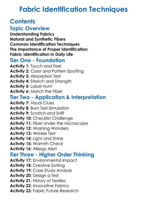 Fabric Identification Techniques Worksheet Activity Booklet