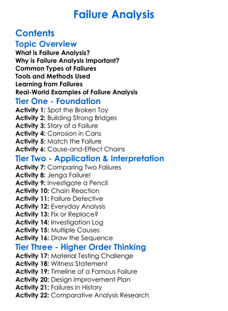 Failure Analysis Worksheet Activity Booklet