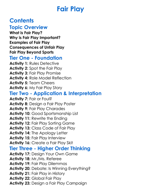 Fair Play Worksheet Activity Booklet