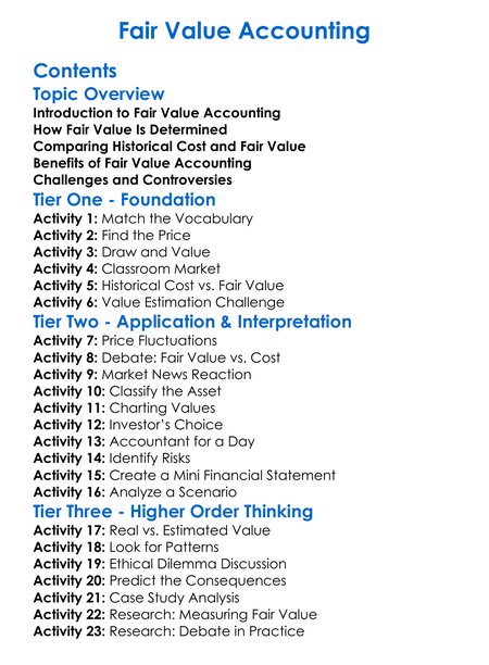 Fair Value Accounting Worksheet Activity Booklet