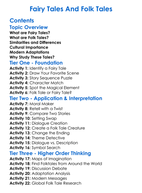 Fairy Tales And Folk Tales Worksheet Activity Booklet