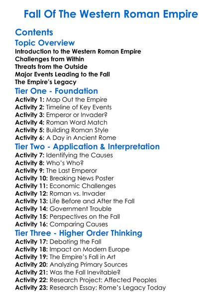 Fall Of The Western Roman Empire Worksheet Activity Booklet