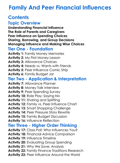 Family And Peer Financial Influences Worksheet Activity Booklet