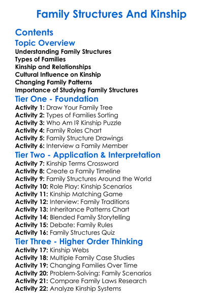 Family Structures And Kinship Worksheet Activity Booklet