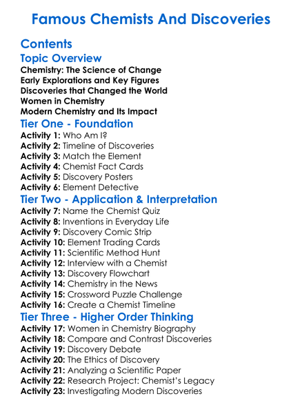 Famous Chemists And Discoveries Worksheet Activity Booklet