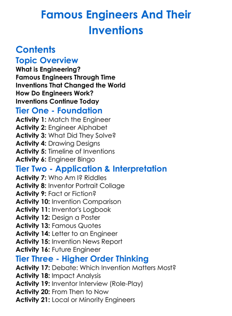 Famous Engineers And Their Inventions Worksheet Activity Booklet