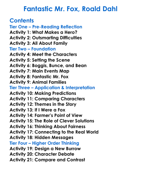 Fantastic Mr Fox Roald Dahl Worksheet Activity Booklet