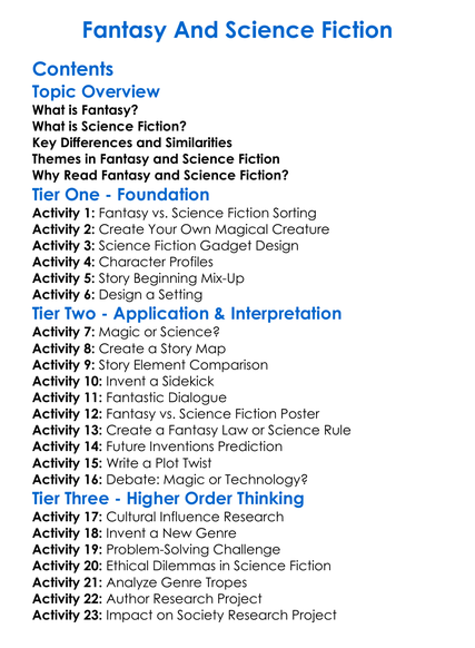 Fantasy And Science Fiction Worksheet Activity Booklet
