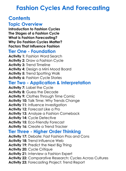 Fashion Cycles And Forecasting Worksheet Activity Booklet