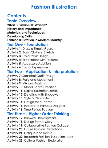 Fashion Illustration Worksheet Activity Booklet