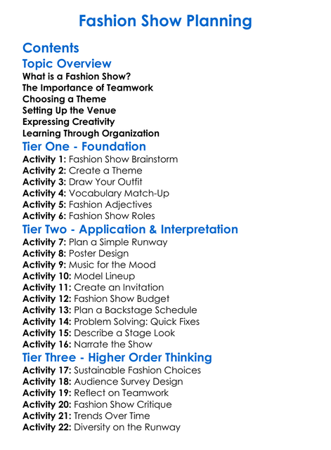 Fashion Show Planning Worksheet Activity Booklet