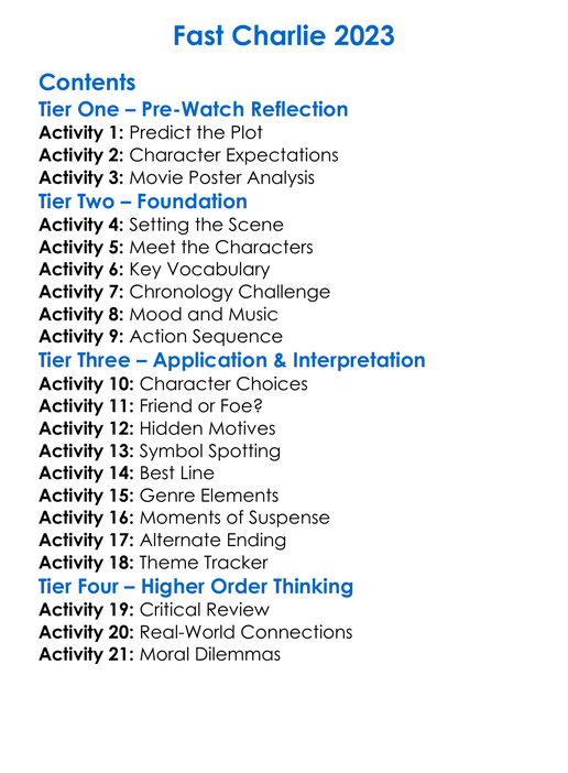 Fast Charlie 2023 Worksheet Activity Booklet