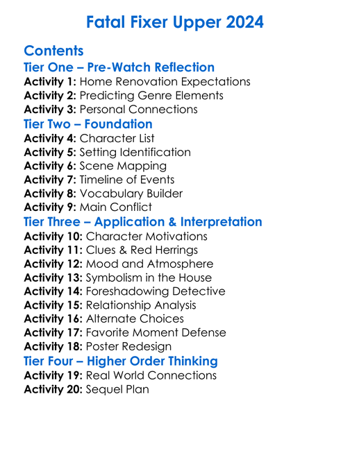 Fatal Fixer Upper 2024 Worksheet Activity Booklet