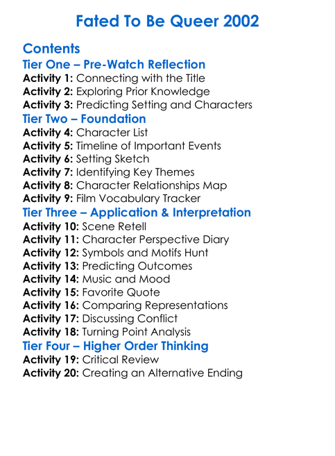 Fated To Be Queer 2002 Worksheet Activity Booklet