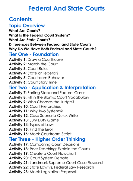 Federal And State Courts Worksheet Activity Booklet