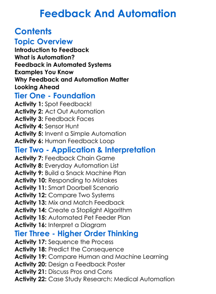 Feedback And Automation Worksheet Activity Booklet