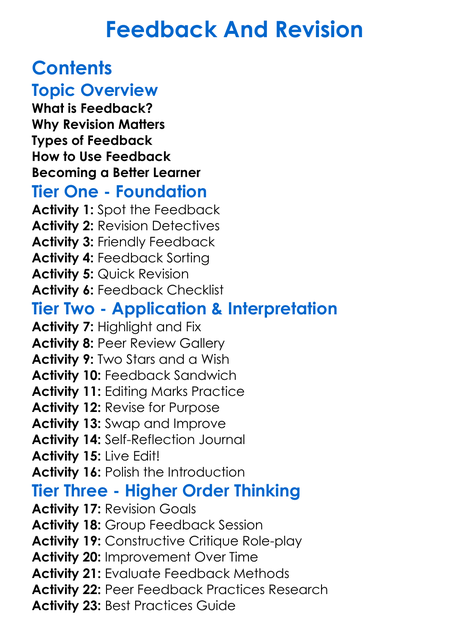 Feedback And Revision Worksheet Activity Booklet