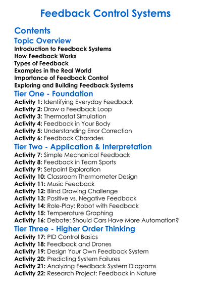 Feedback Control Systems Worksheet Activity Booklet