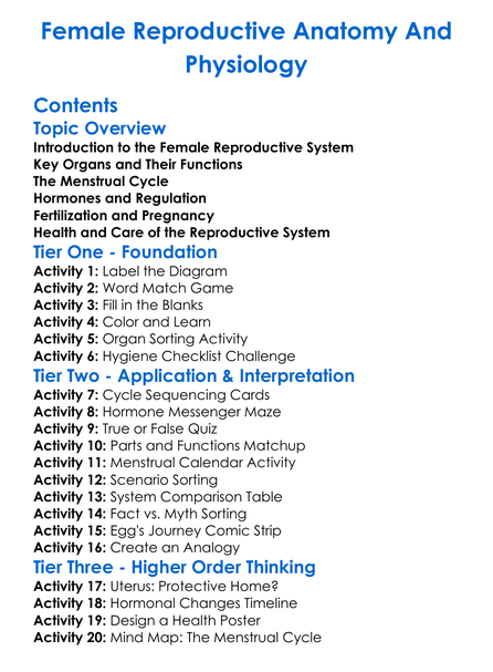 Female Reproductive Anatomy And Physiology Worksheet Activity Booklet