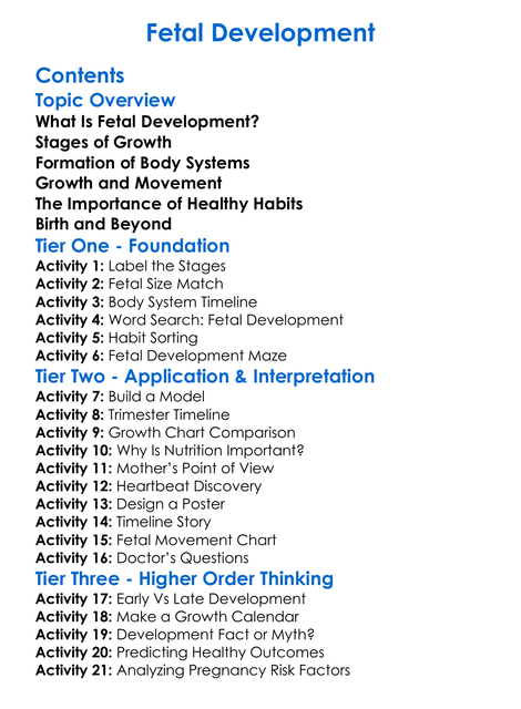 Fetal Development Worksheet Activity Booklet