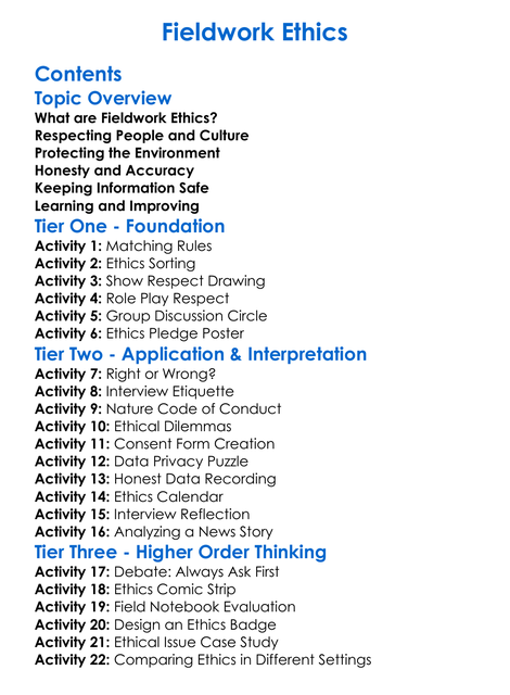 Fieldwork Ethics Worksheet Activity Booklet