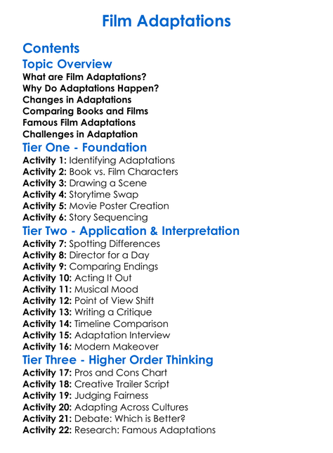 Film Adaptations Worksheet Activity Booklet
