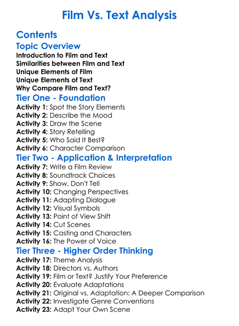 Film Vs Text Analysis Worksheet Activity Booklet