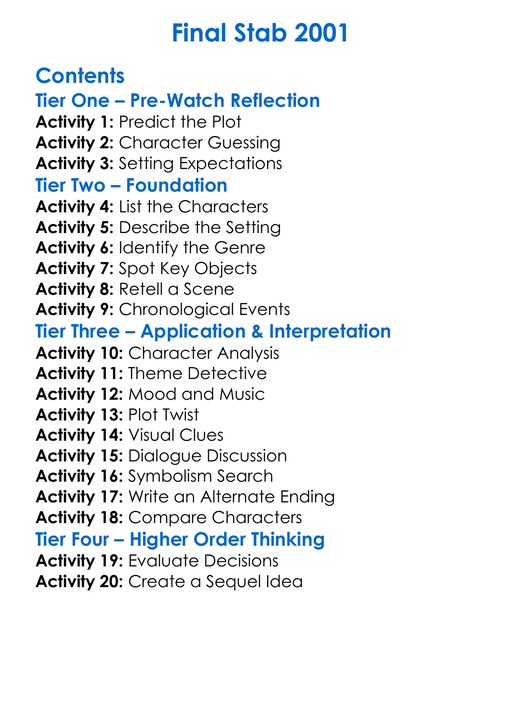 Final Stab 2001 Worksheet Activity Booklet