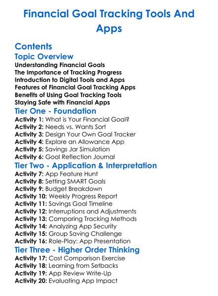 Financial Goal Tracking Tools And Apps Worksheet Activity Booklet