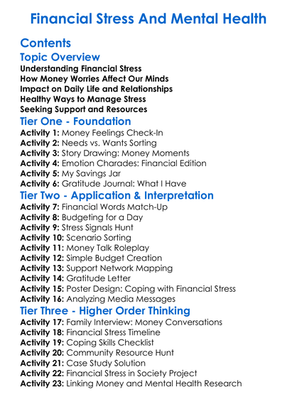 Financial Stress And Mental Health Worksheet Activity Booklet