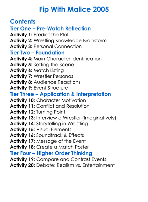 Fip With Malice 2005 Worksheet Activity Booklet