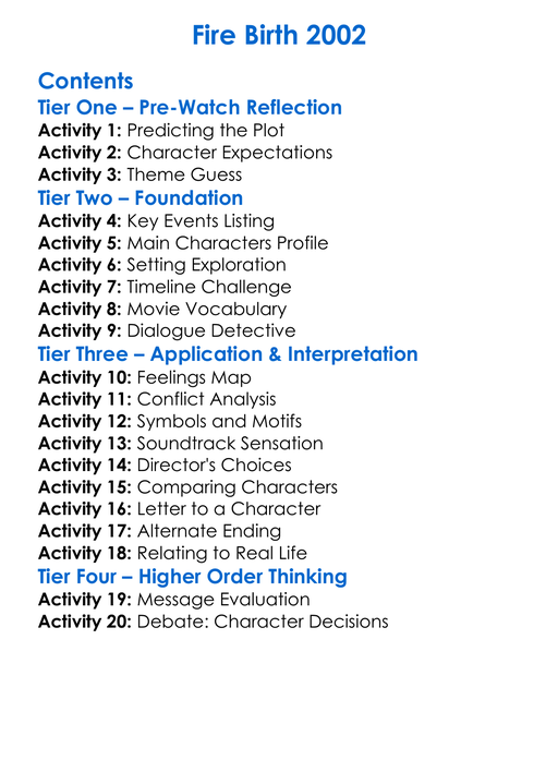 Fire Birth 2002 Worksheet Activity Booklet