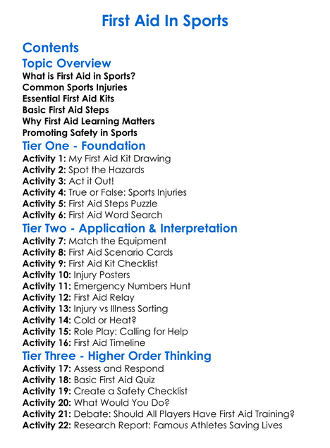 First Aid In Sports Worksheet Activity Booklet