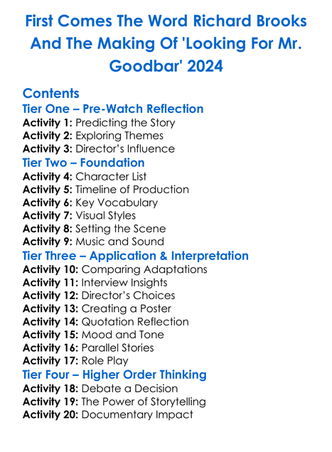 First Comes The Word Richard Brooks And The Making Of Looking For Mr Goodbar 2024 Worksheet Activity Booklet
