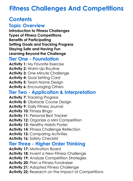 Fitness Challenges And Competitions Worksheet Activity Booklet