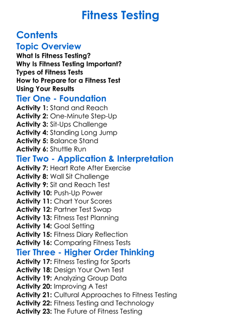Fitness Testing Worksheet Activity Booklet