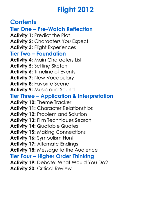 Flight 2012 Worksheet Activity Booklet
