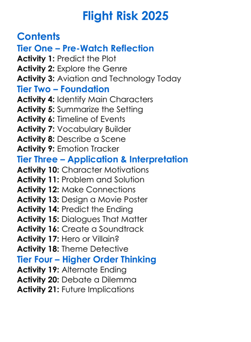 Flight Risk 2025 Worksheet Activity Booklet