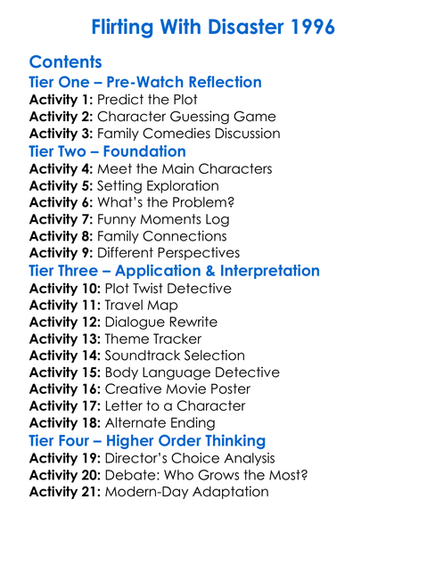 Flirting With Disaster 1996 Worksheet Activity Booklet