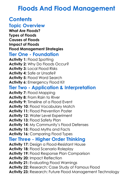 Floods And Flood Management Worksheet Activity Booklet