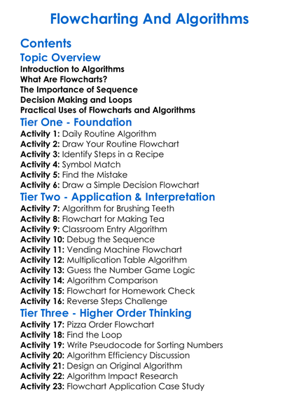 Flowcharting And Algorithms Worksheet Activity Booklet