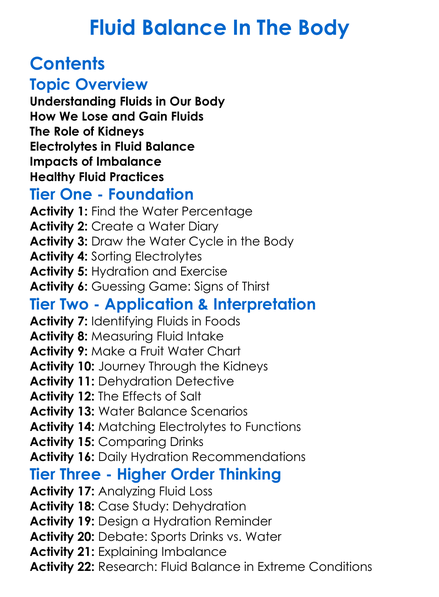 Fluid Balance In The Body Worksheet Activity Booklet