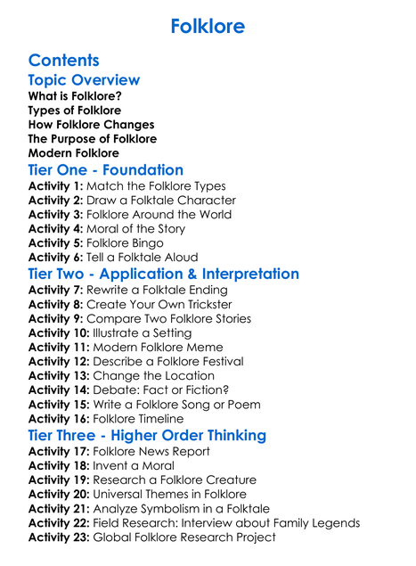 Folklore Worksheet Activity Booklet